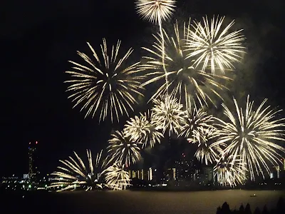 この花火大会は2か所から打ち上げられ、1か所からの花火は自宅から鑑賞することができる。